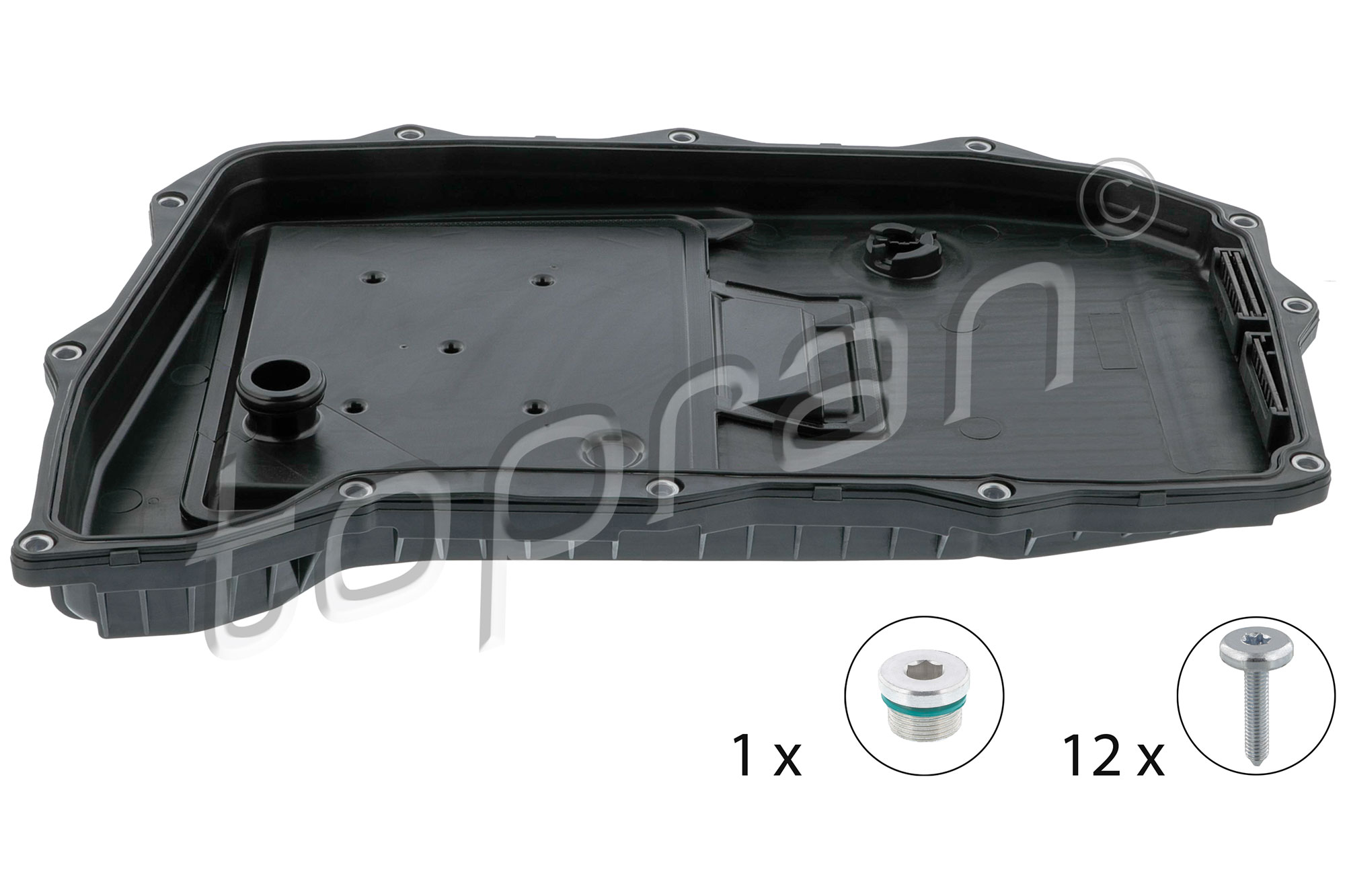 TOPRAN Ölwanne, Automatikgetriebe 118 636 mit Ölablassschraube schwarz für SKODA VW SEAT CUPRA AUDI PORSCHE VAG 0D5398009 0D5398009C