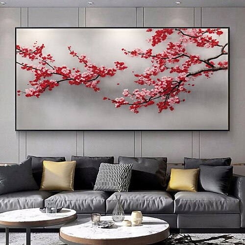 grande dipinto a olio dipinto a mano in stile cinese, dipinto di fiori a inchiostro, dipinto di paesaggi, dipinto di fiori di prugna rosa, regalo di inaugurazione della casa