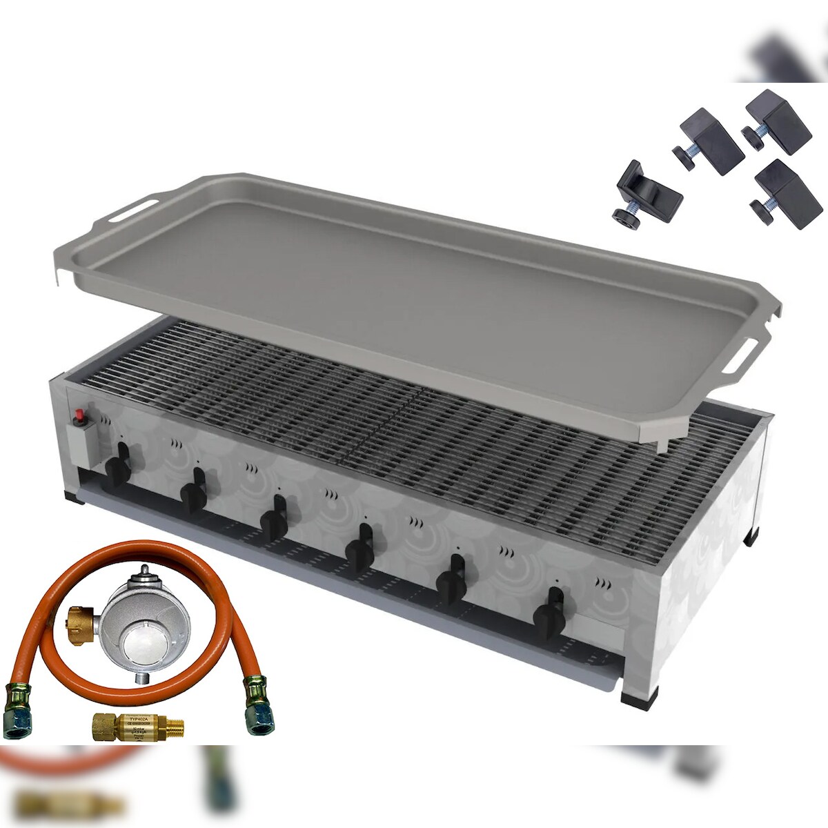 ChattenGlut ChattenTec Professional doppelwandiger Gastrobräter 6-flammig Tischgerät 24 kW, Flüssiggas 1145x530x280 mm mit Gewerberegler und Rost und Pfanne