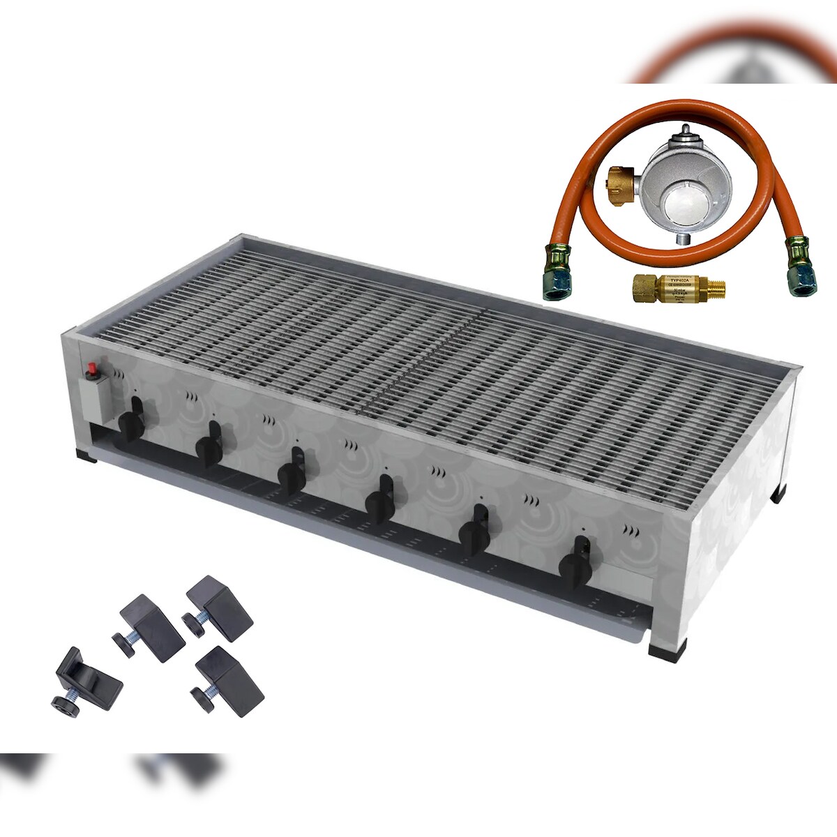 ChattenGlut ChattenTec Professional doppelwandiger Gastrobräter 6-flammig Tischgerät 24 kW, Flüssiggas 1145x530x280 mm mit Gewerberegler und Rost