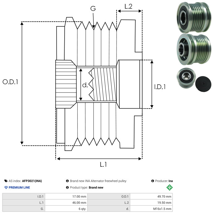 AS-PL Generatorfreilauf AFP3021(INA) für MERCEDES-BENZ A6461550115 A2781500060 6461550115