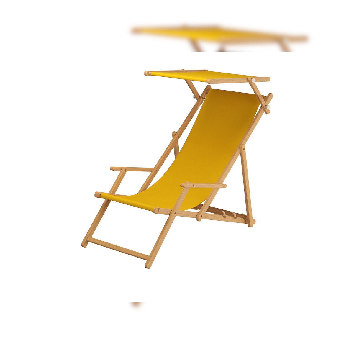 Erst-Holz Gartenliege gelb Strandliege Sonnenliege Holz Relaxliege Sonnendach Deckchair Strandstuhl 10-302NS
