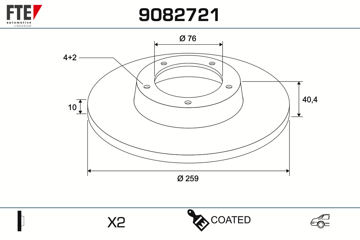 FTE Bremsscheibe 9082721 hinten rechts links voll 259mm für HYUNDAI (BEIJING) 58411-29300 58411-28300 5841129300