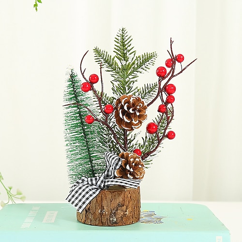 Mini albero di Natale da tavolo, albero di Natale artificiale, decorazione natalizia, piccola decorazione festiva con base in legno, perfetto ornamento per feste in casa, ufficio e vacanze.