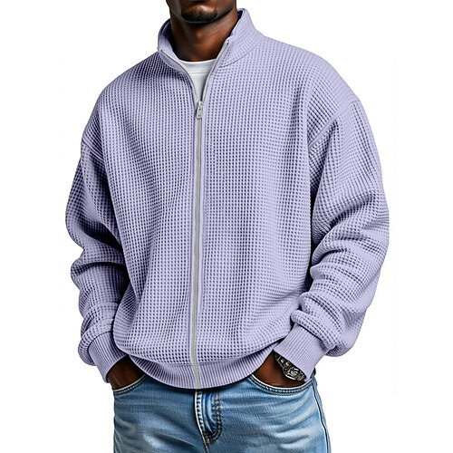 Per uomo Maglia Felpa a nido d'ape Felpa con zip intera Nero Bianco Verde chiaro Vino Blu marino Colletto Mao Semplice Con zip Testurizzato Casuale Quotidiano Sport Outdoor Streetwear Cool