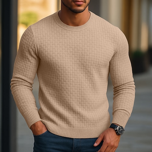 Per uomo Felpa Maglione di lana Maglione A Coste Maglia Top Regolari Lavorato a maglia Semplice Girocollo Moda Streetwear Casuale Abbigliamento quotidiano Abbigliamento Autunno Inverno Blu Cammello S