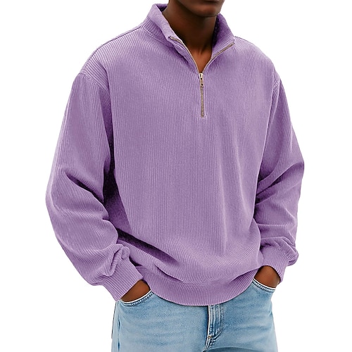 Per uomo Maglia Velluto a coste Felpa in pile Maglione Felpa con cappuccio abbottonata Aalbicocca Nero Verde militare Blu marino Blu Colletto Mao Semplice Patchwork Blocco di colore Testurizzato