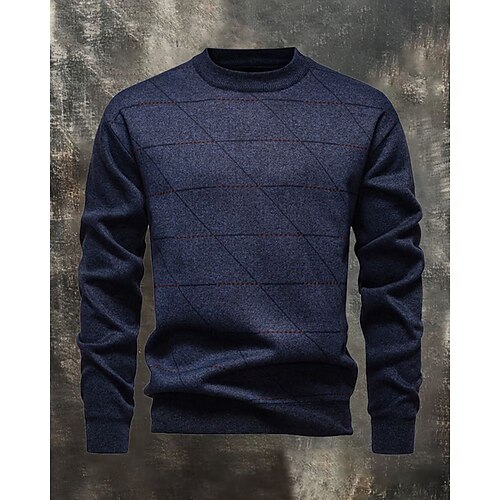 Per uomo Maglione Maglione a maglia A Coste Maglia Top Regolari Lavorato a maglia Plaid Scollo a V Moda Essenziale Vacanza Abbigliamento quotidiano Abbigliamento Primavera Autunno Blu marino Cachi S