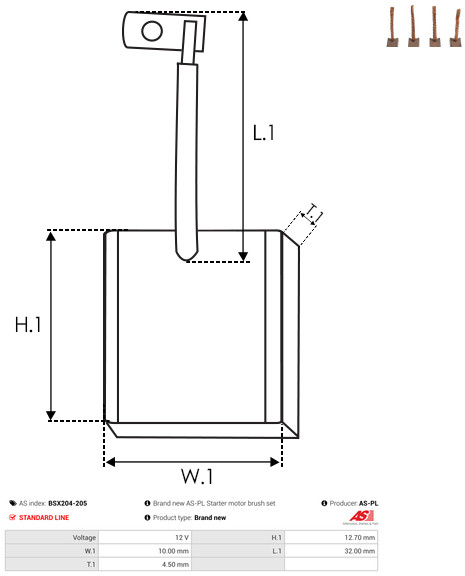 AS-PL Kohlebürste, Starter BSX204-205 Universal 12V