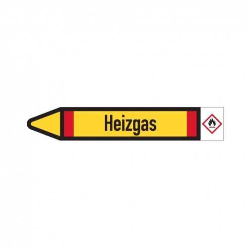 Aufkleber I RKZ-Etikett Heizgas,links,DIN,gelb/schwarz/rot,für Ø 25-40mm,154x26mm,5/Bogen