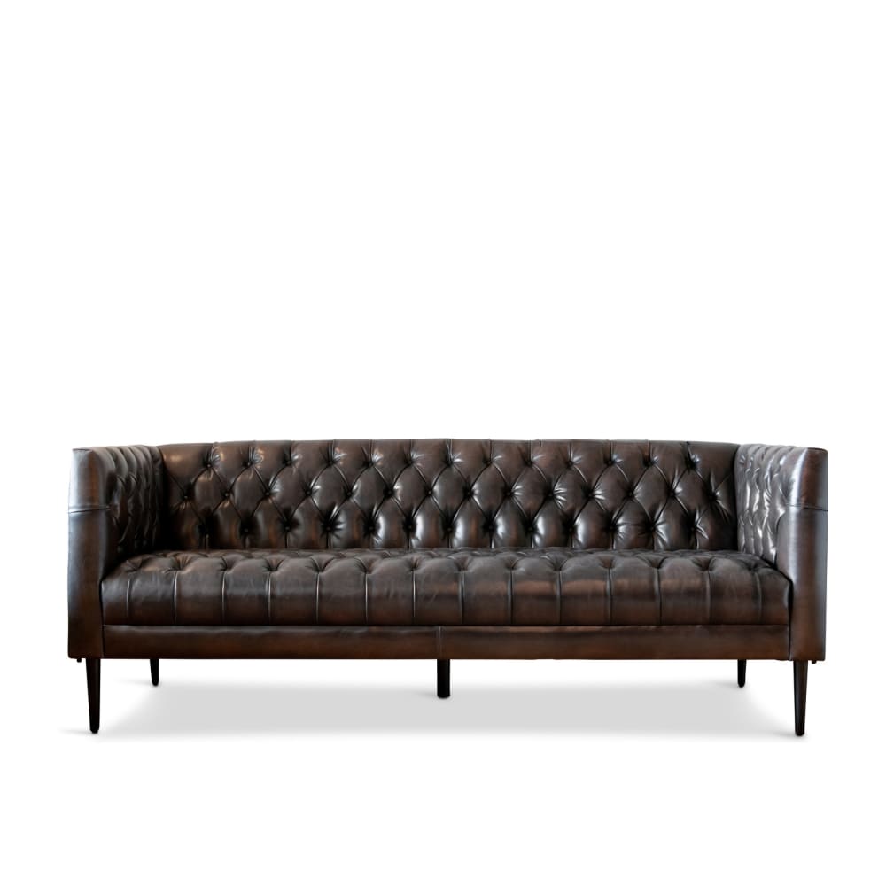 Divano fisso crosta di pelle 3 posti marrone 213x90cm