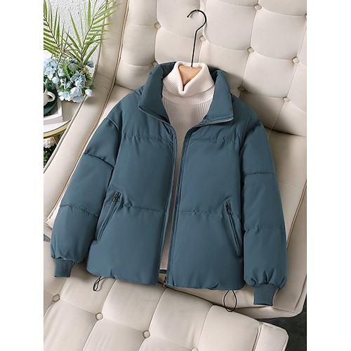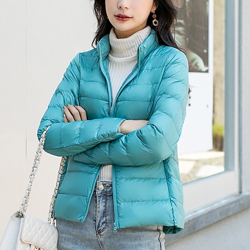 Per donna Cappotto Invernale Giacca Piumino Caldo Confortevole Cerniera Tasca Casual Semplice Abbigliamento quotidiano Uscire Weekend Corto Collo alla coreana Vestibilità regolare Manica Lunga