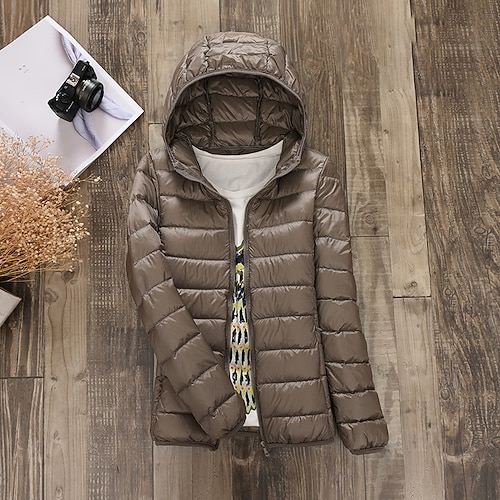 Per donna Giacca Piumino Caldo Confortevole Cerniera Tasca Moda All'aperto Semplice Abbigliamento quotidiano Uscire Weekend Cerniera Regolare Con Cappuccio Vestibilità regolare Manica Lunga Capispalla