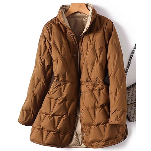 Per donna Cappotto Invernale Giacca Piumino Caldo Confortevole Cerniera Tasca Casual Semplice Casuale Vacanza Streetwear Abbigliamento quotidiano Lungo Collo ripiegato Vestibilità regolare Manica