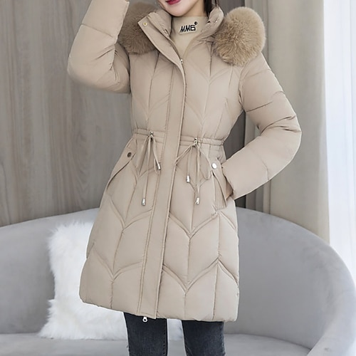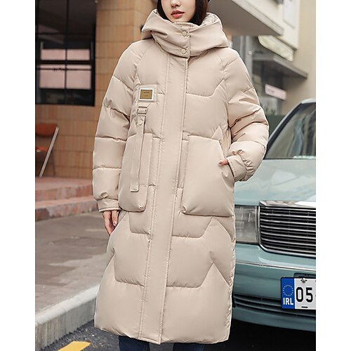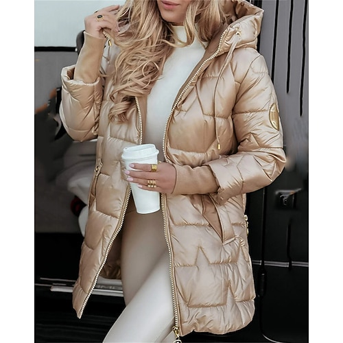 Per donna Cappotto Invernale Giacca Piumino Giacca con Cappuccio Caldo Confortevole Cerniera Tasca Casual Semplice Vacanza Abbigliamento quotidiano Uscire Weekend Lungo Con Cappuccio Vestibilit