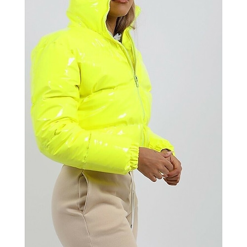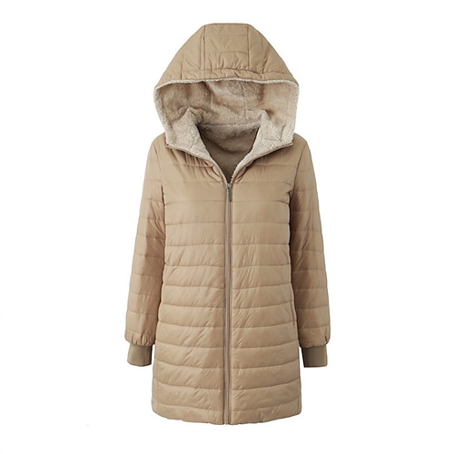 Per donna Giacca Piumino Giacca imbottita Giacca trapuntata Caldo Confortevole Cerniera Tasca Moda Casual Semplice Streetwear Abbigliamento quotidiano Uscire Cerniera Regolare Con Cappuccio