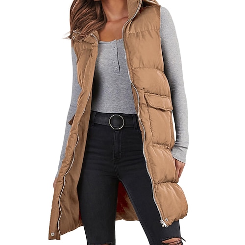 Per donna Cappotto Invernale Giacca Piumino Gilet Caldo Confortevole Cerniera Tasca Casual Semplice Vacanza Casuale Abbigliamento quotidiano Uscire Regolare Lungo Collo ripiegato Vestibilità regolare