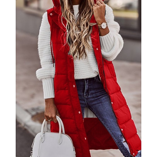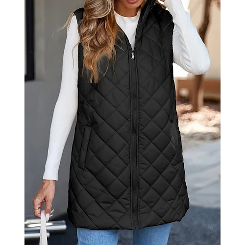 Per donna Giacca Piumino Gilet Confortevole Cerniera Tasca Casual Semplice Vacanza Streetwear Abbigliamento quotidiano Uscire Lungo Con Cappuccio Vestibilità regolare Senza Maniche Capispalla Nero