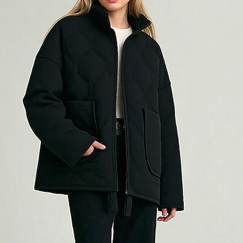 Per donna Giacca Piumino Giacca imbottita Caldo Confortevole Cerniera Tasca Moda Moderno Casual Semplice Uscire Weekend Cerniera Regolare Collo alla coreana Vestibilità regolare Manica Lunga