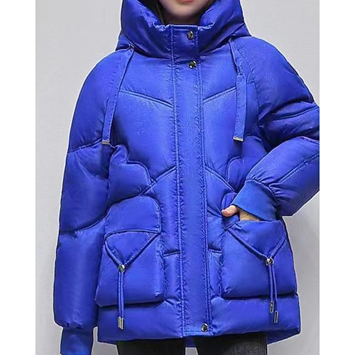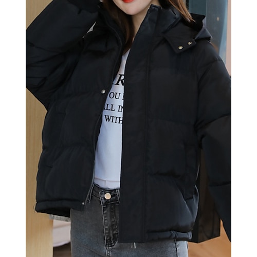 Per donna Cappotto Invernale Giacca Piumino Giacca trapuntata Caldo Confortevole Cerniera Tasca Casual Semplice All'aperto Vacanza Streetwear Abbigliamento quotidiano Regolare Con Cappuccio
