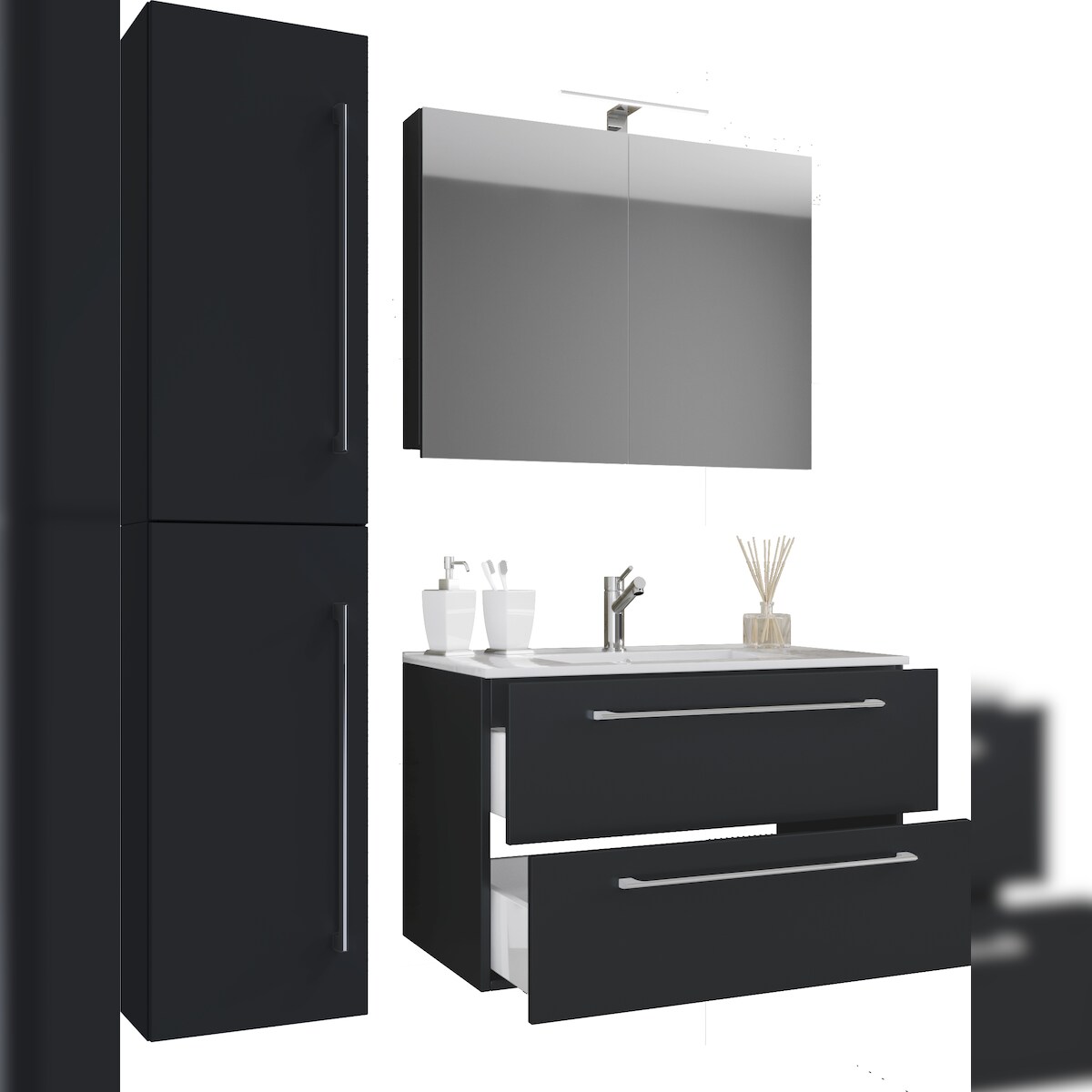 VCM Badmöbel Waschtisch Badinos Schwarz H. 151 x B. 93 x T. 46 cm