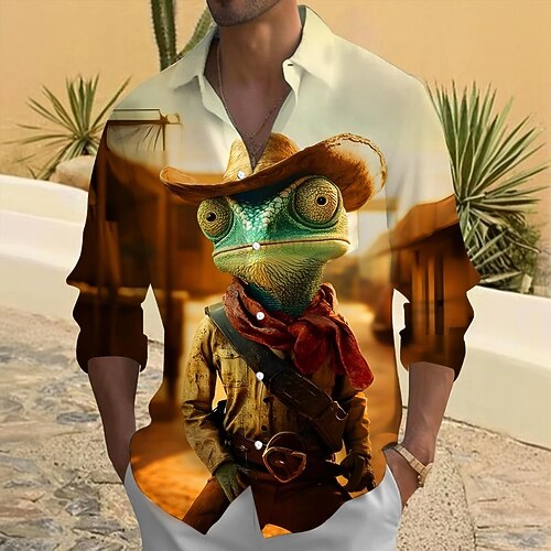 Per uomo Rana Cowboy Stivaletti Camicia Camicia Western Camicia con Bottoni Manica Lunga Vintage Retrò Vacanza Quotidiano Abbigliamento casual alla moda Primavera Autunno Collo ripiegato Stampa 3D