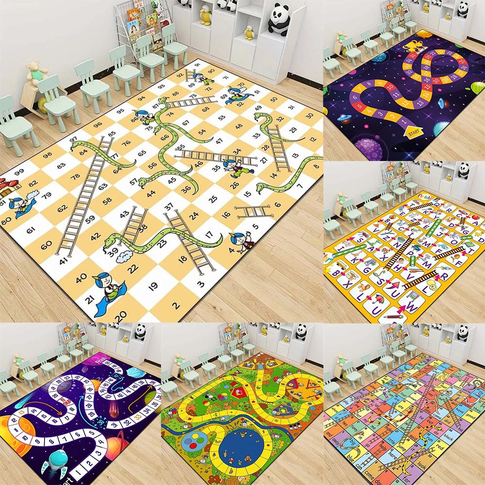 Kids Game Pattern Floor Mat Various Styles with Snakes Ladders Alphabet and Space Themes NonSlip Rug for Children's Room Decor