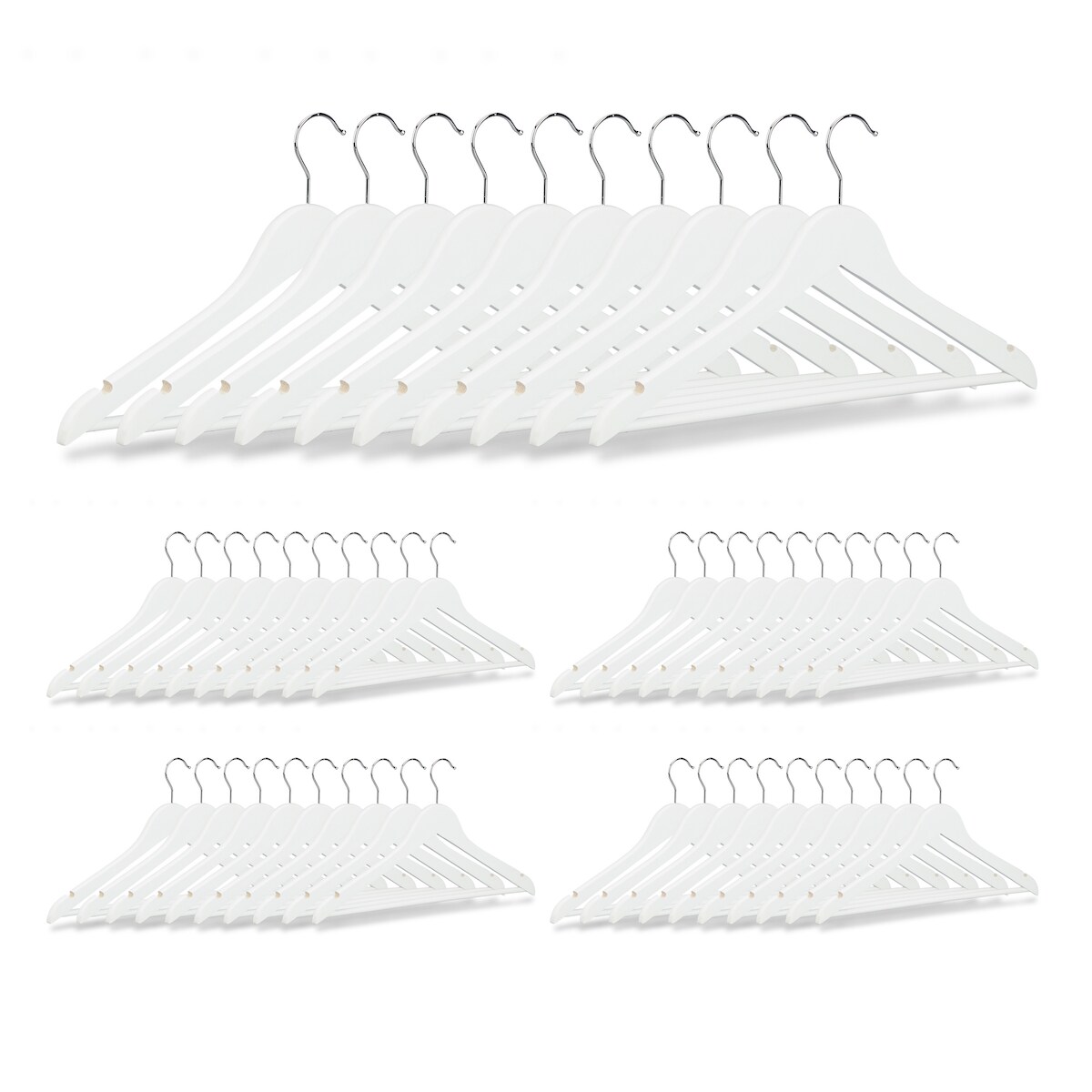Relaxdays Kleiderbügel im 50er Set, Hosenstange, für Röcke, Hemden, Jacken, Haken 360° drehbar, stabil, Holz, weiß