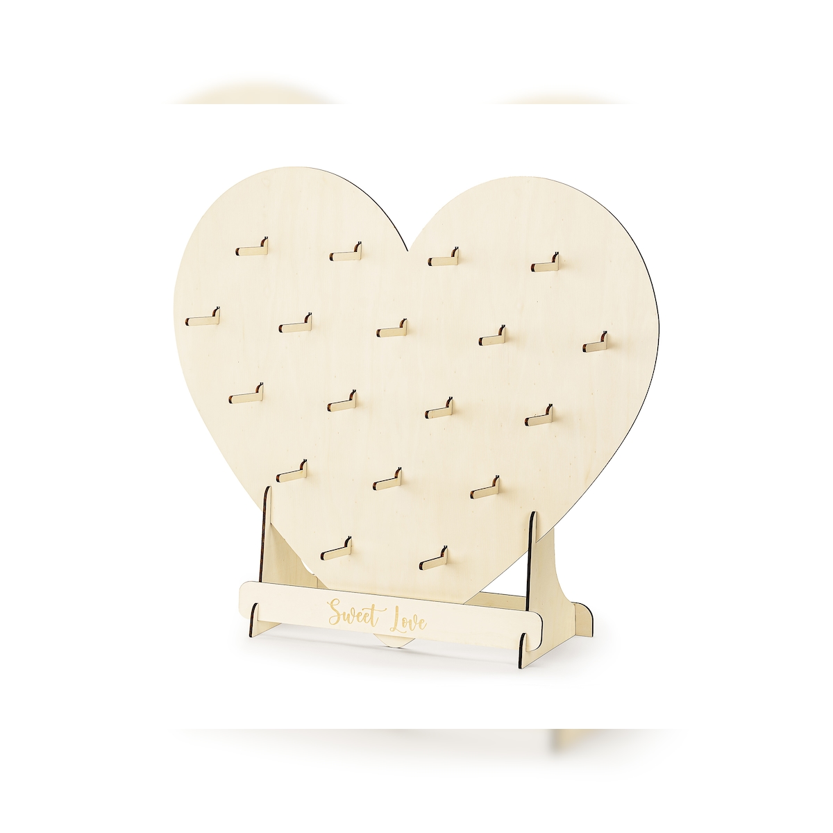 PartyDeco Aufsteller aus Holz 65x59cm Herzform Donuts Ständer mit 18 Haken Donut Bagel Brezel Wall Deko Holzständer Herz Hochzeit Geburtstag Babyparty Natur