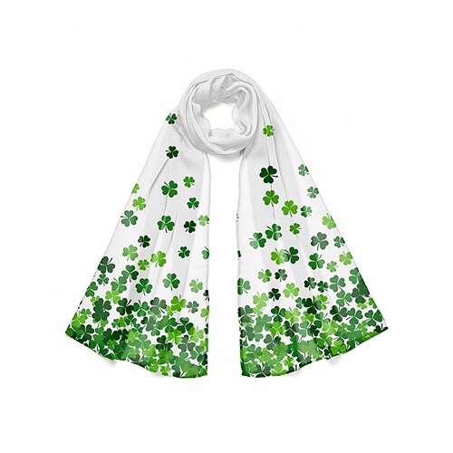 sciarpa da donna in poliestere con trifoglio, materiale in chiffon traspirante, motivo a trifoglio verde, perfetta per il giorno di San Patrizio e per l'abbigliamento casual di tutti i giorni