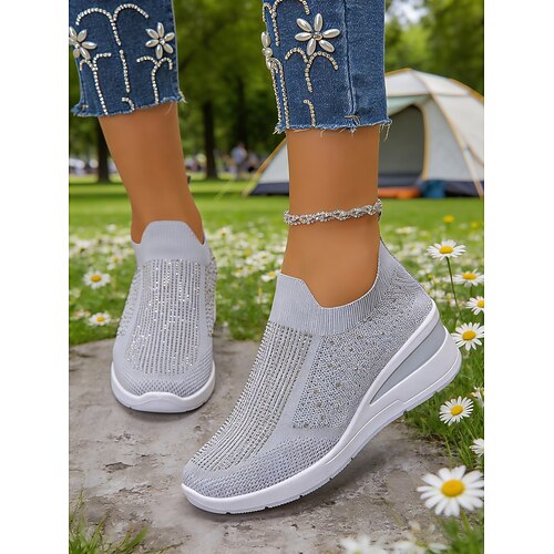 sneakers da donna blu slip-on con zeppa – mocassini casual con plateau decorati con strass per il comfort e la moda di tutti i giorni