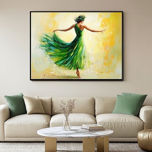 dipinto a olio fatto a mano elegante donna ballerina dipinto in abito verde ritratto astratto dipinto su tela grande ragazza ballerina dipinti arte murale moderna spatola impasto arte pittura