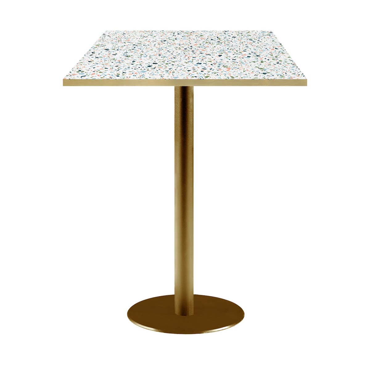 RestooTab - Stehtisch Rome goldmetallic 60x60 Dekor Terrazzo spectra chip Kanten messingfarben