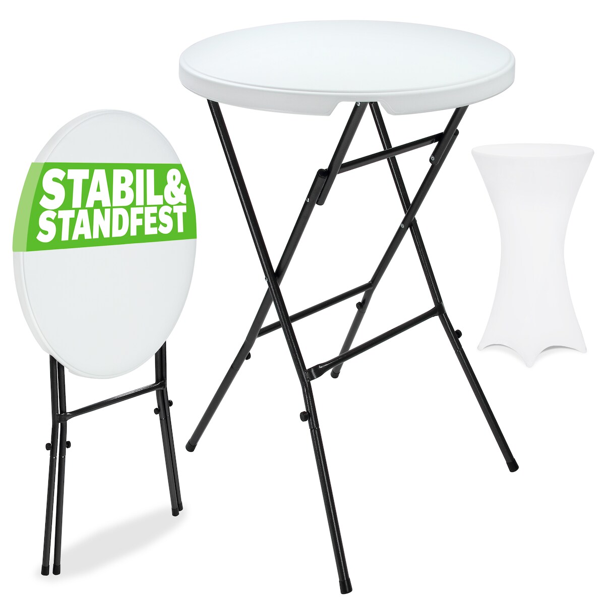 Mendler Set Stehtisch + Stehtischhusse HWC-J30, Bistrotisch Tischhusse, klappbar höhenverstellbar Ø 60cm ~ Husse weiss