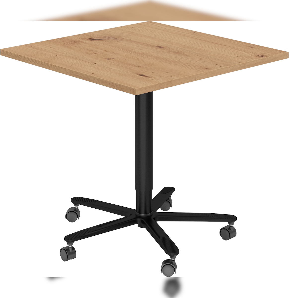 bümö Säulenhubtisch höhenverstellbar, Stehtisch Büro, Bistrotisch eckig 80 x 80 cm - Besprechungstisch Asteiche, Stehtisch Holz-Platte, Säule aus