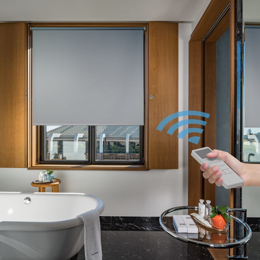 Store enrouleur motorisé occultant gris 120 x 190 cm