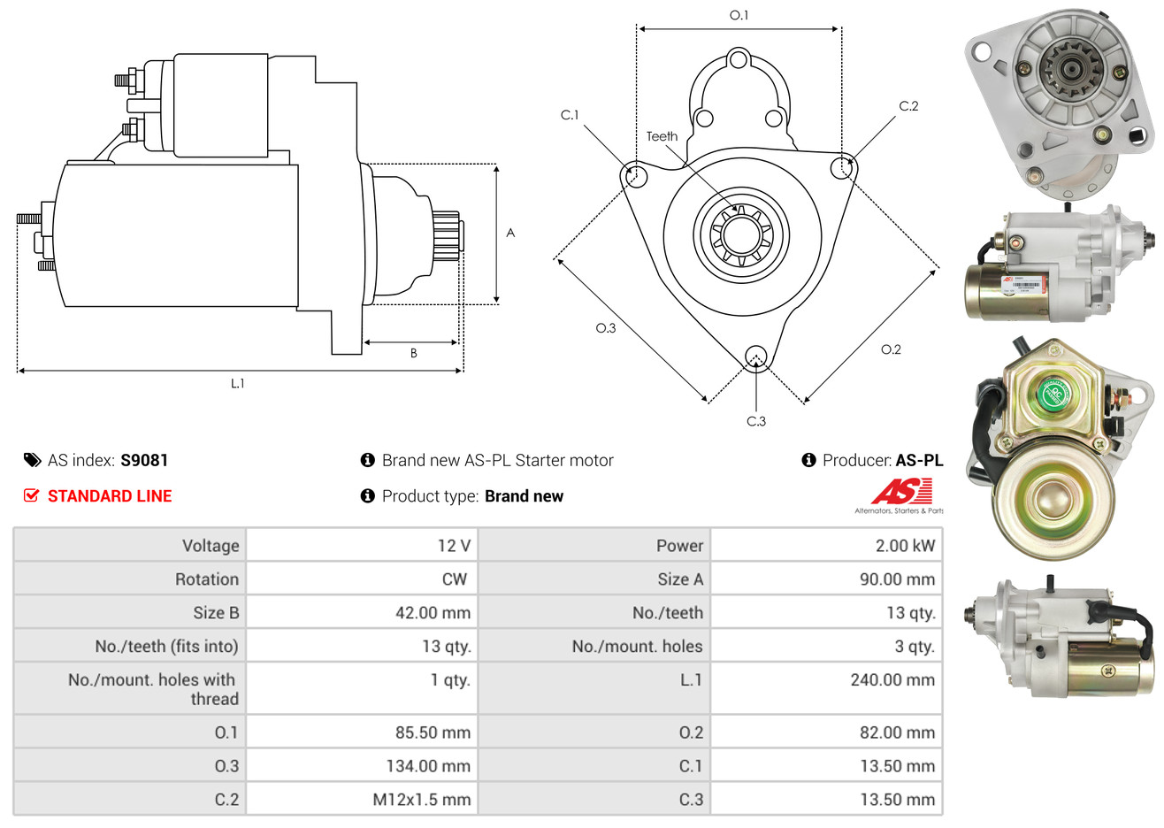 AS-PL Starter Universal 12V für HYUNDAI (BEIJING) OK620-18-400A OK620-18-400 S9081