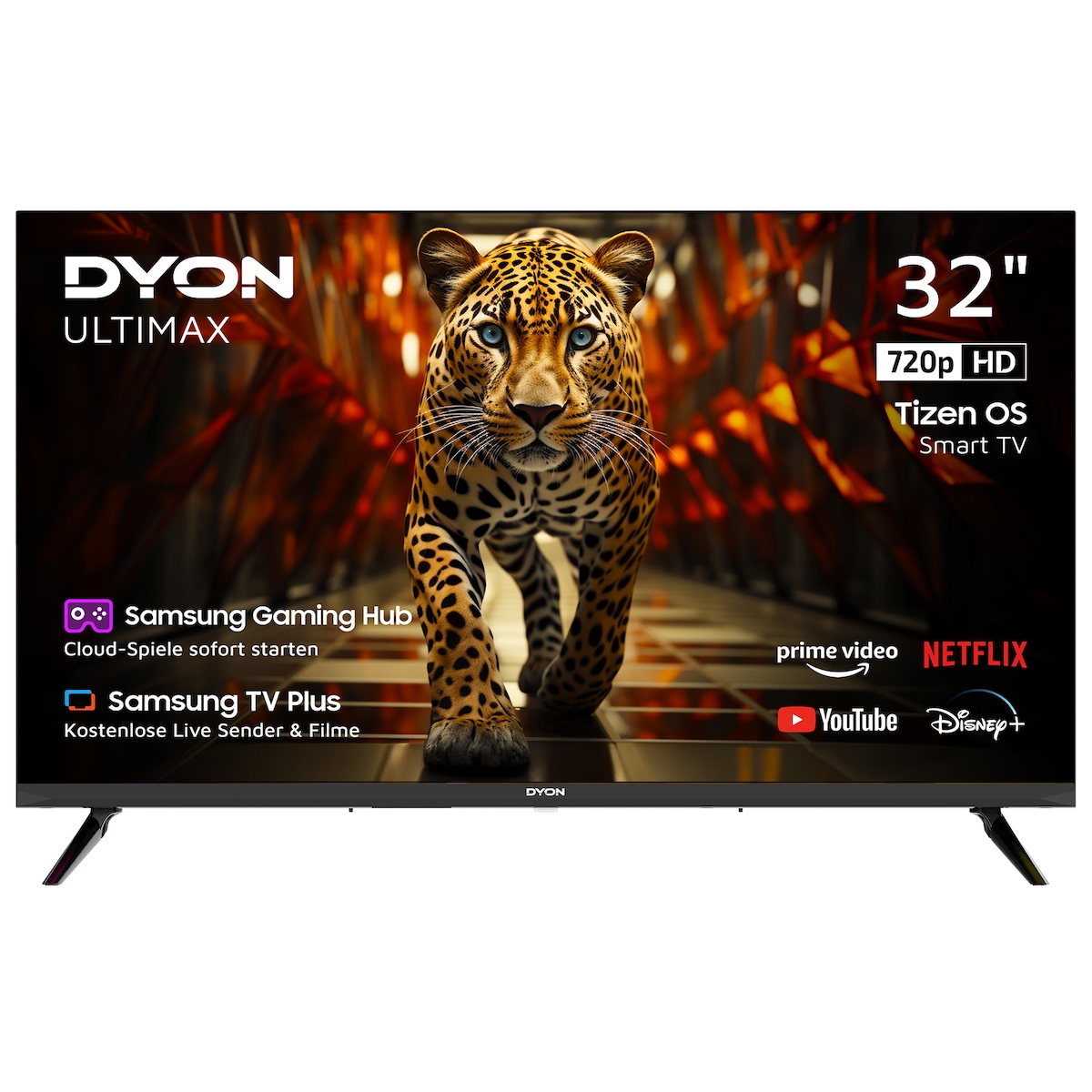 DYON Ultimax 32H-TI-W 32 Zoll (80 cm), 1366 x 768 HD, Tizen OS, Samsung TV Plus, Samsung Gaming & Smart Hub, HD Triple Tuner