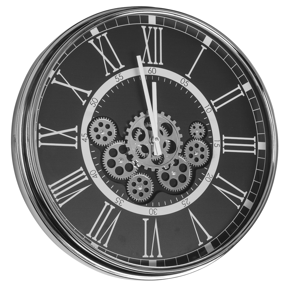 Uhr Gear 54 cm verchromt schwarzer Hintergrund - Rond Plastique Table Passion
