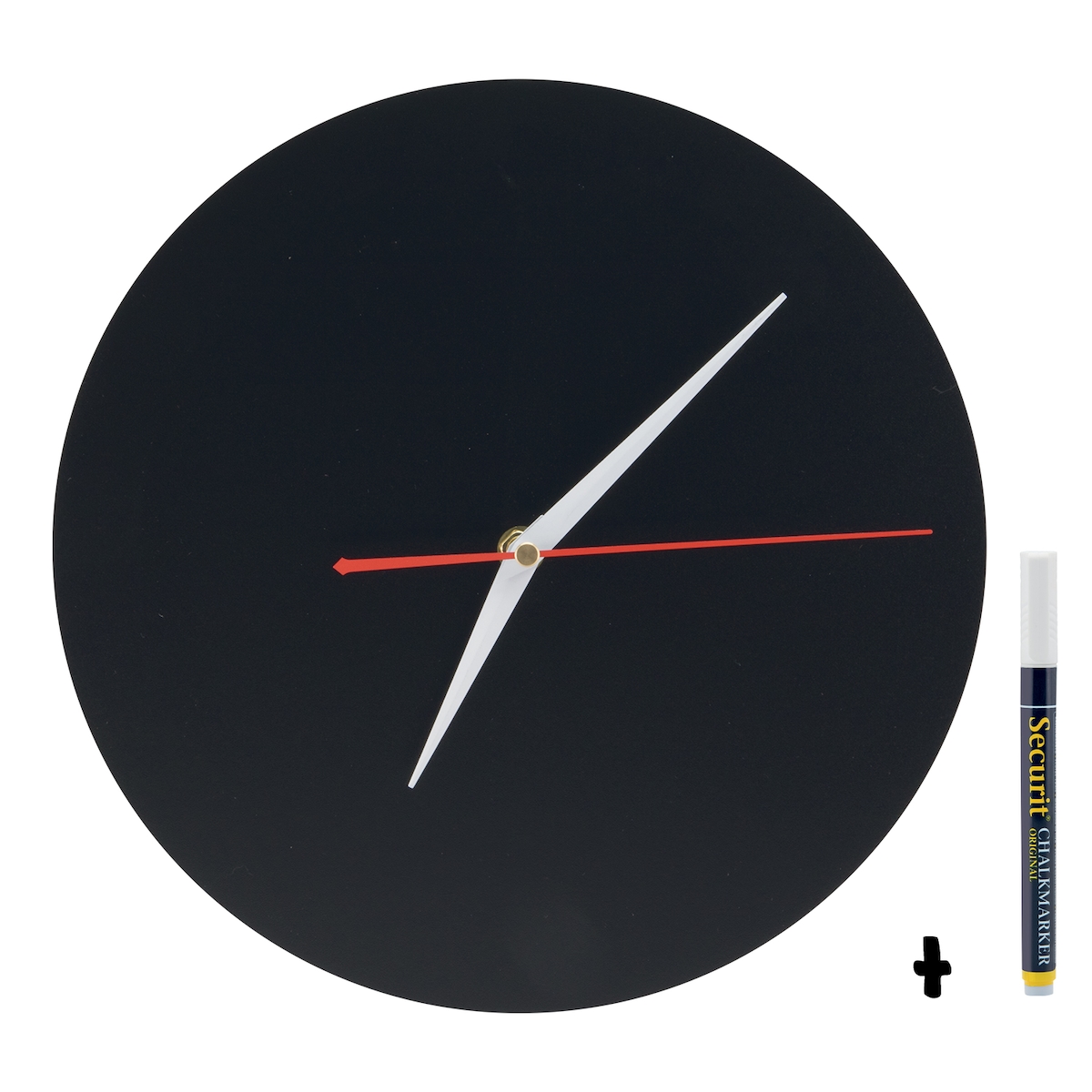 Securit® Silhouette Uhr Kreidetafel – Mit Kreidemarker + Montageset Inklusive – 29x29 cm