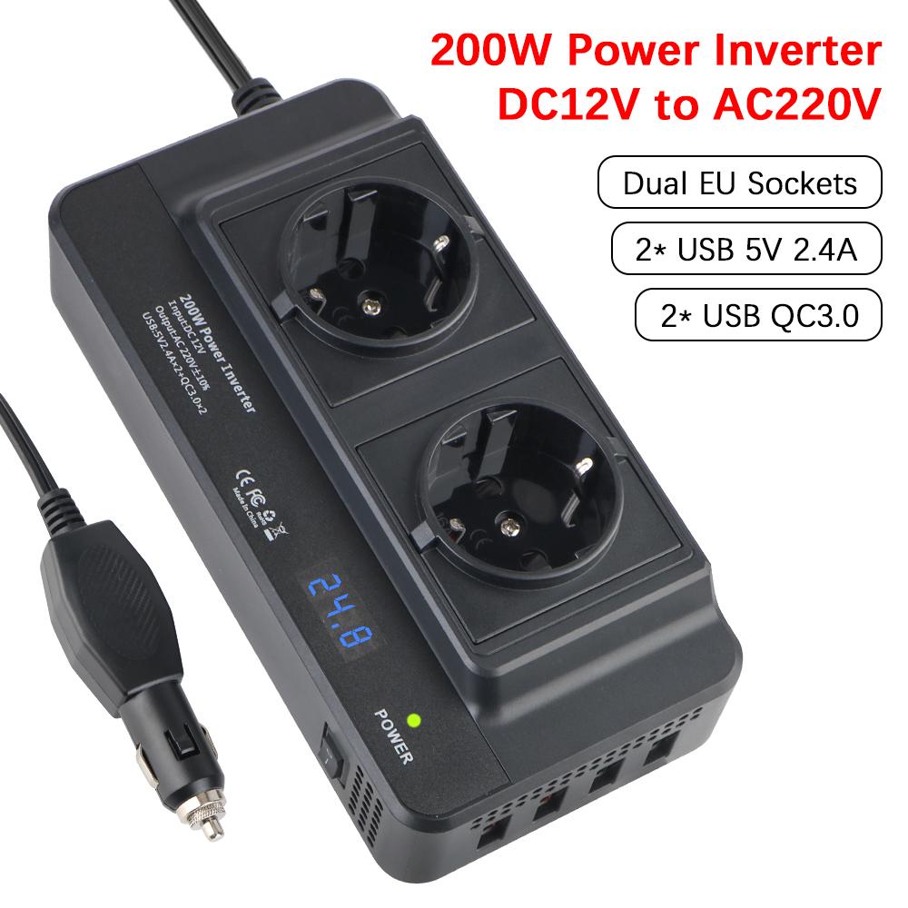 Auto 200W Inverter Autozubehör Zubehör Zigarettenanzünder Auto Montierter Inverter AC EU Steckdose 12V auf 220V 4 USB DC auf AC 400W Spitzenleistung