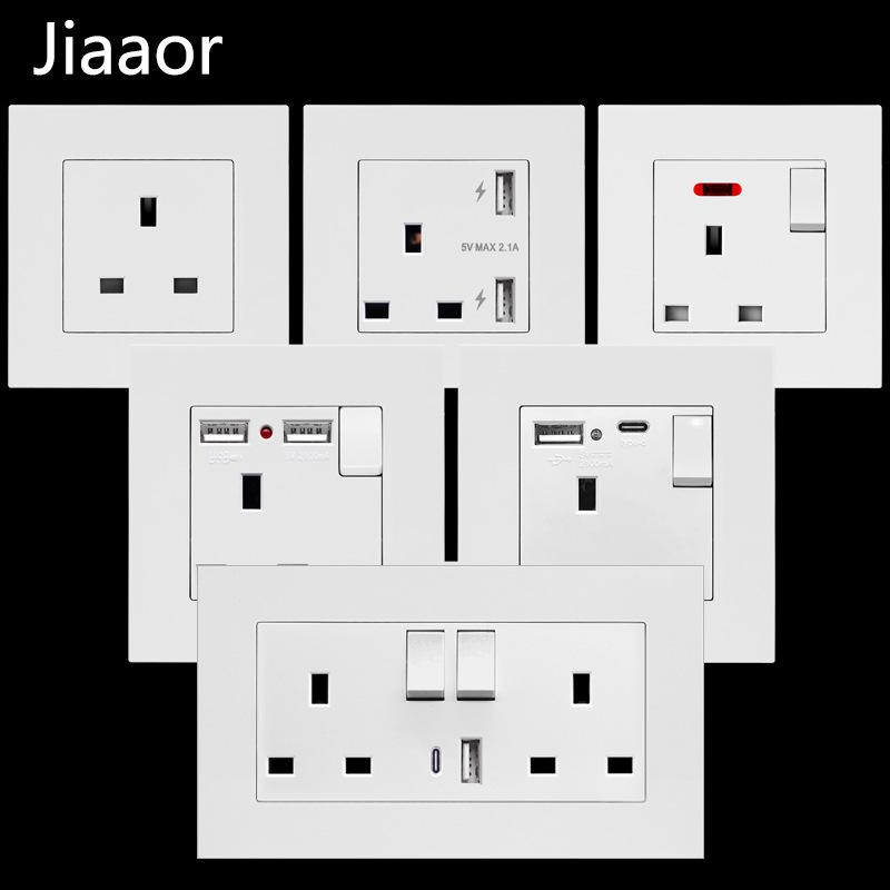 Universelle 18W Typ-C Schnellladung Doppelsteckdose, 220V Elektrische Wandleuchte 2-Wege-Schalter UK 13A Wand Doppel-USB-Steckdose