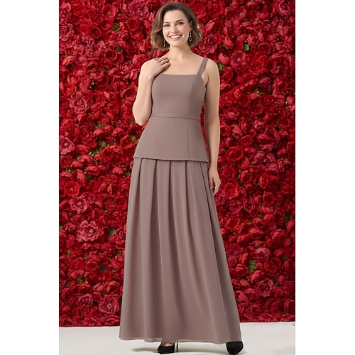 Linea ad A Tubino Colonna Lunghezza al pavimento Abito da invitata a nozze Vestito in Chiffon Abito Formale Abito da cerimonia per signora Senza Maniche Manica Lunga Spalline sottili Elegante Vintage