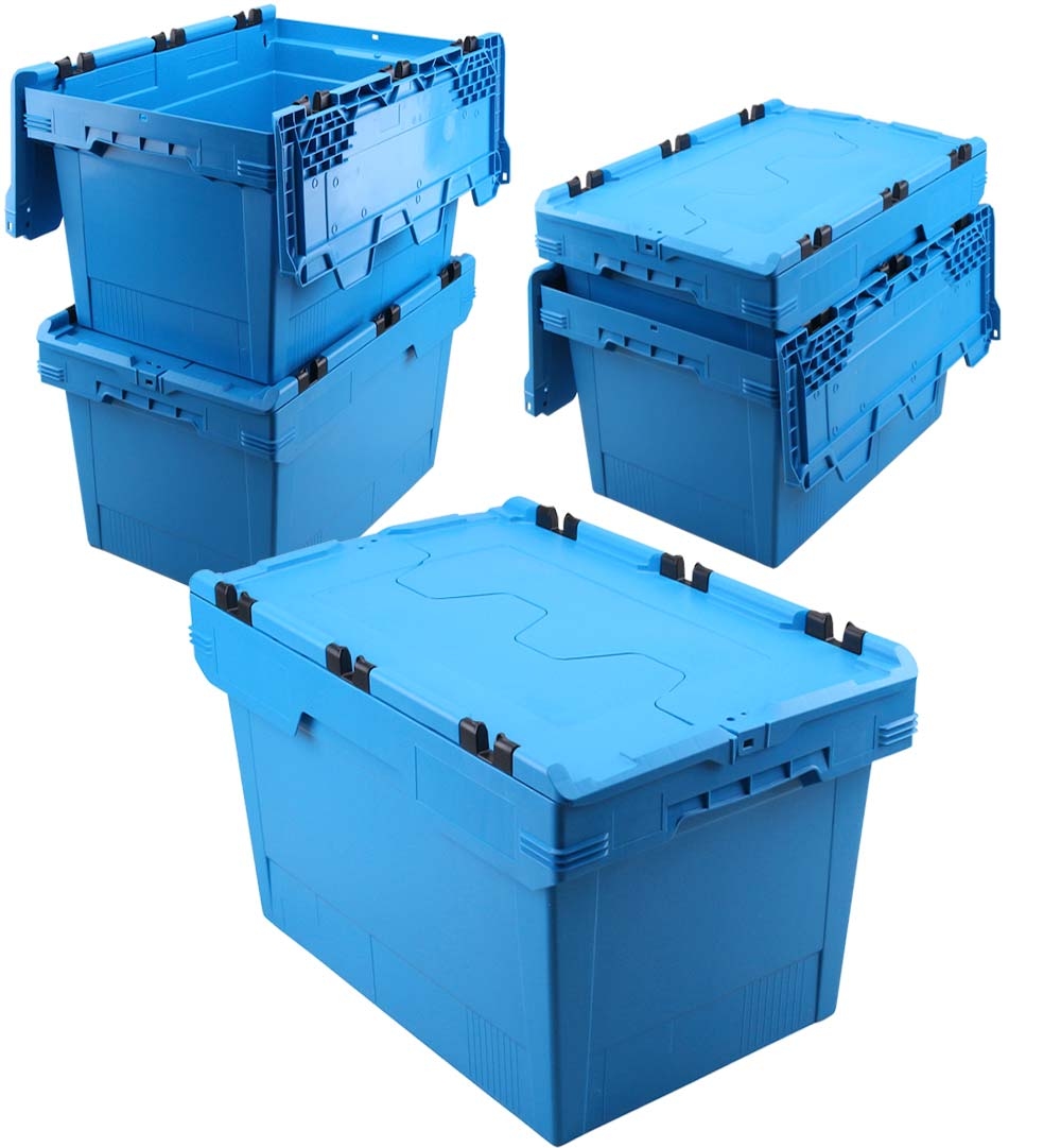 BRB Set, 5x Mehrwegbehälter mit Klappdeckel, rot, verplompbar, LxBxH 600 x 400 x 350 mm, 58 Liter