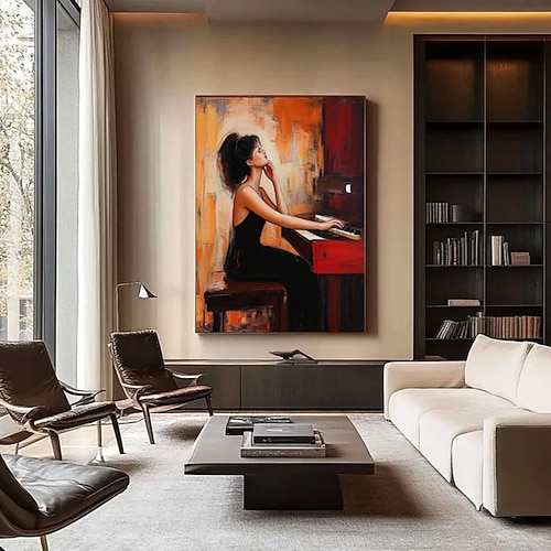 dipinto a mano enigmatico pianista dipinto a olio arte murale dipinto ragazza ballerina rossa dipinto arte astratta su tela donna che suona il pianoforte arte murale contemporanea decorazione