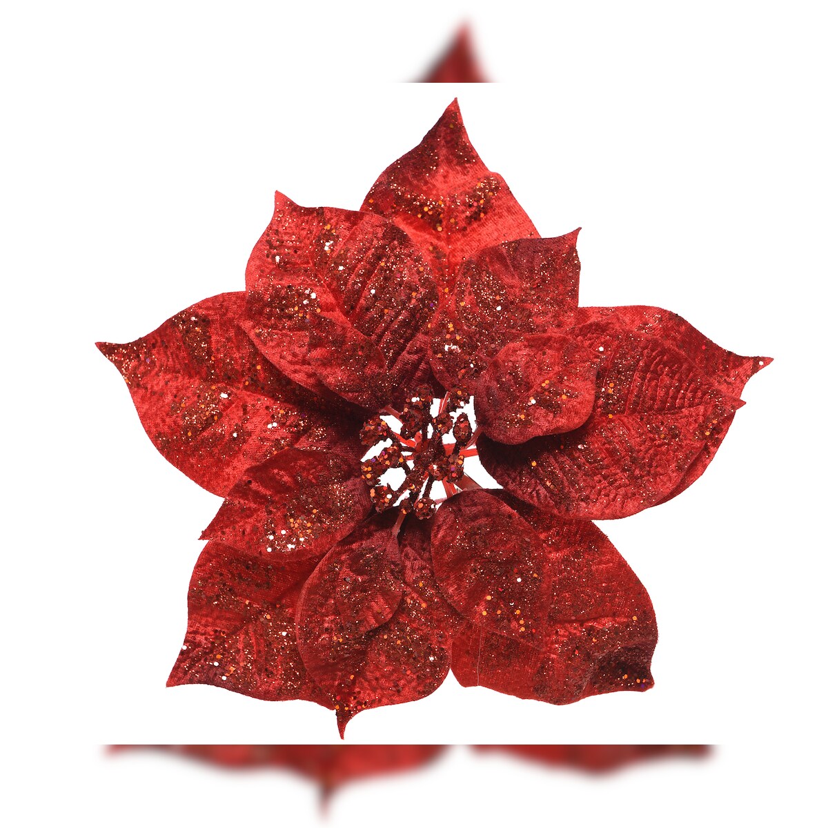 1 Weihnachtsstern Blüte künstlich 25cm mit Clip Christbaumschmuck Kunstblume Weihnachten mit Glitzer Christstern Deko Weihnachtsblume Blume Rot