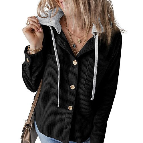 Per donna Cappotto Invernale Caldo Confortevole Tasca Bottoni Moda All'aperto Blocco di colori Uscire Weekend Monopetto Regolare Con Cappuccio Vestibilità regolare Manica Lunga Capispalla Nero Blu