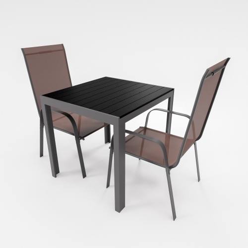 Lex Gartenmöbel Set Alu Tisch 3-tlg. 2x Stapelsessel Gartentisch Essgruppe Gartenset Sitzgruppe : Schokobraun