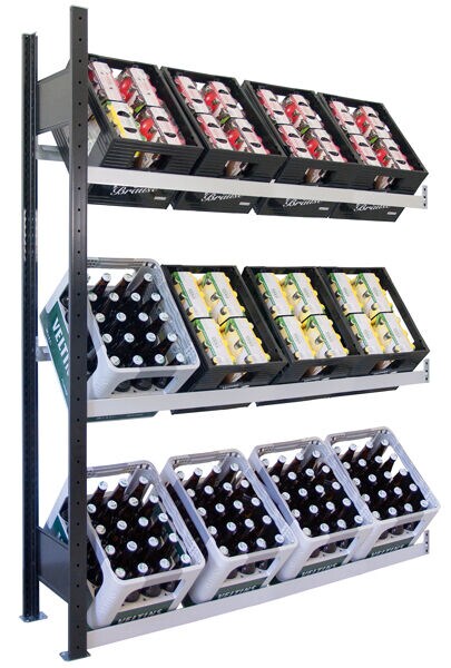 SCHULTE Lagertechnik Anbauregal, Getränkekistenregal 1800 x 1.300 x 300 mm (HxBxT), schwarz/silber, 3 Ebenen für 12 Getränkekisten
