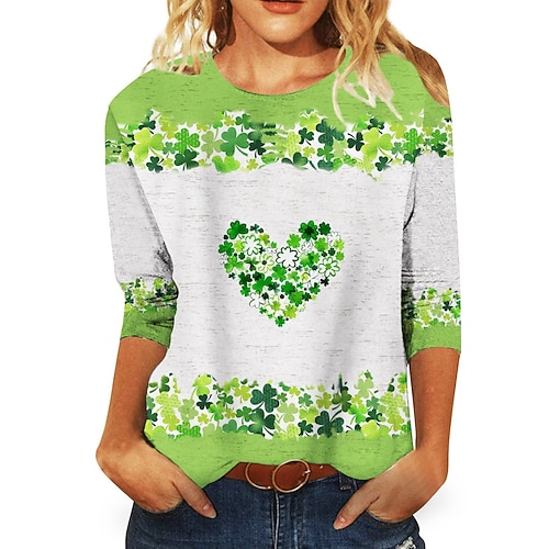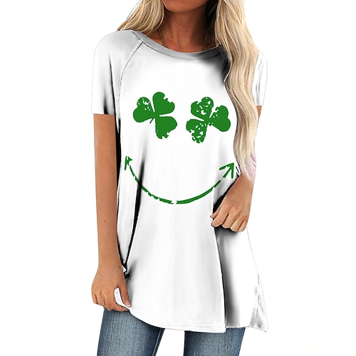 Giorno di San Patrizio Festa di San Patrizio Per donna Maglietta Foglia Giorno di San Patrizio Tunica Manica Corta Girocollo Top lunghi Ferie Weekend Stampato Verde primavera Bianco Verde chiaro